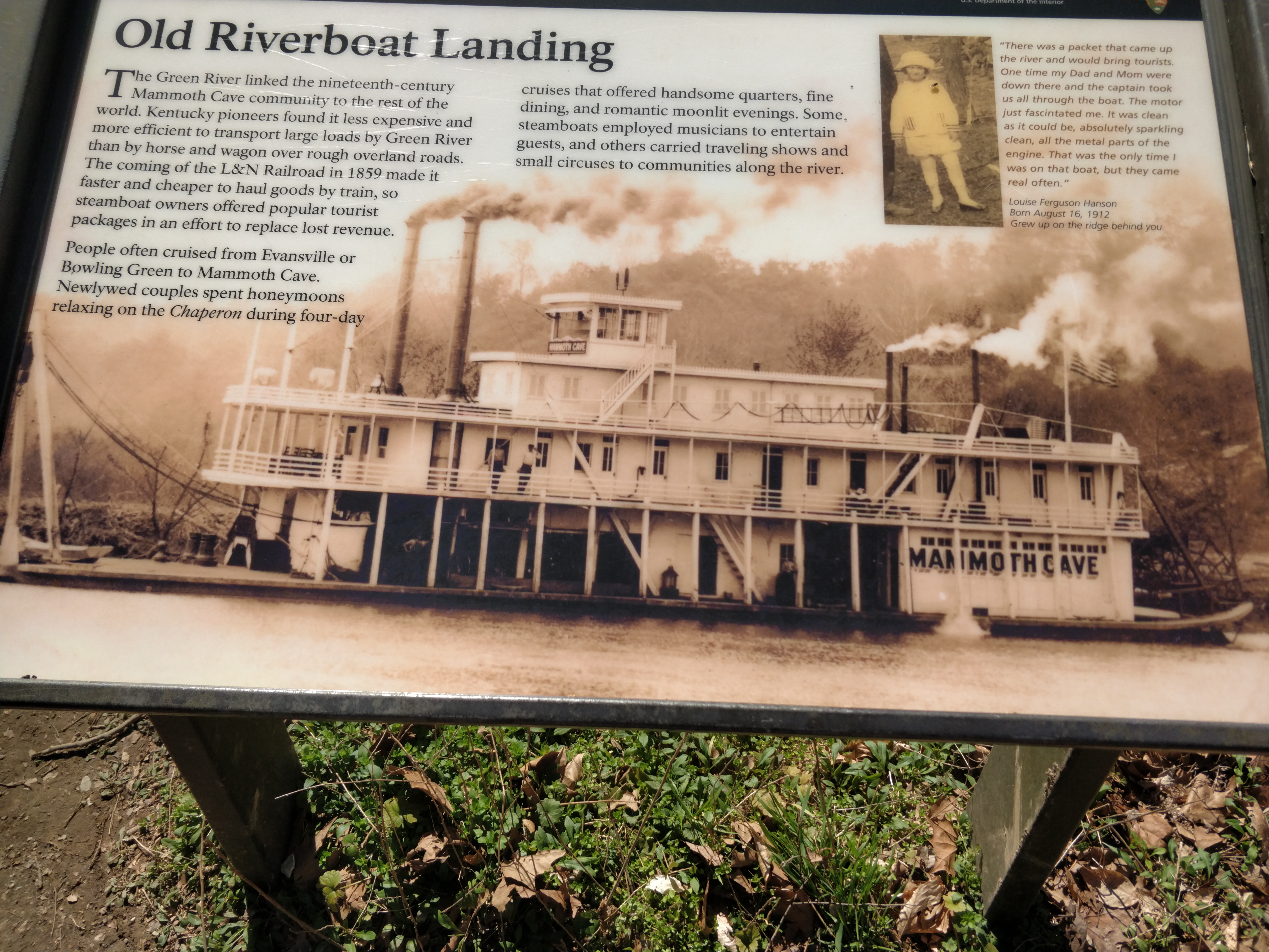 Above ground, the Green River bisects the park. In the early 1900’s, steamboats would bring passengers along the river for excursions to Mammoth Cave. We took a short walk down to the river to see the landing site.