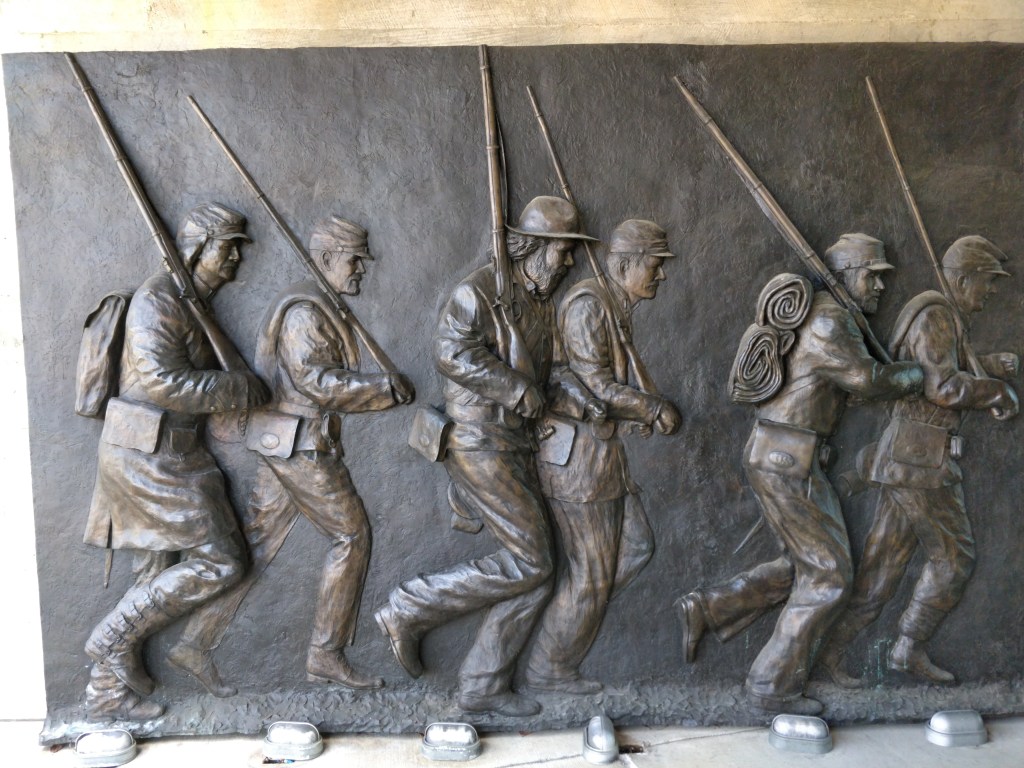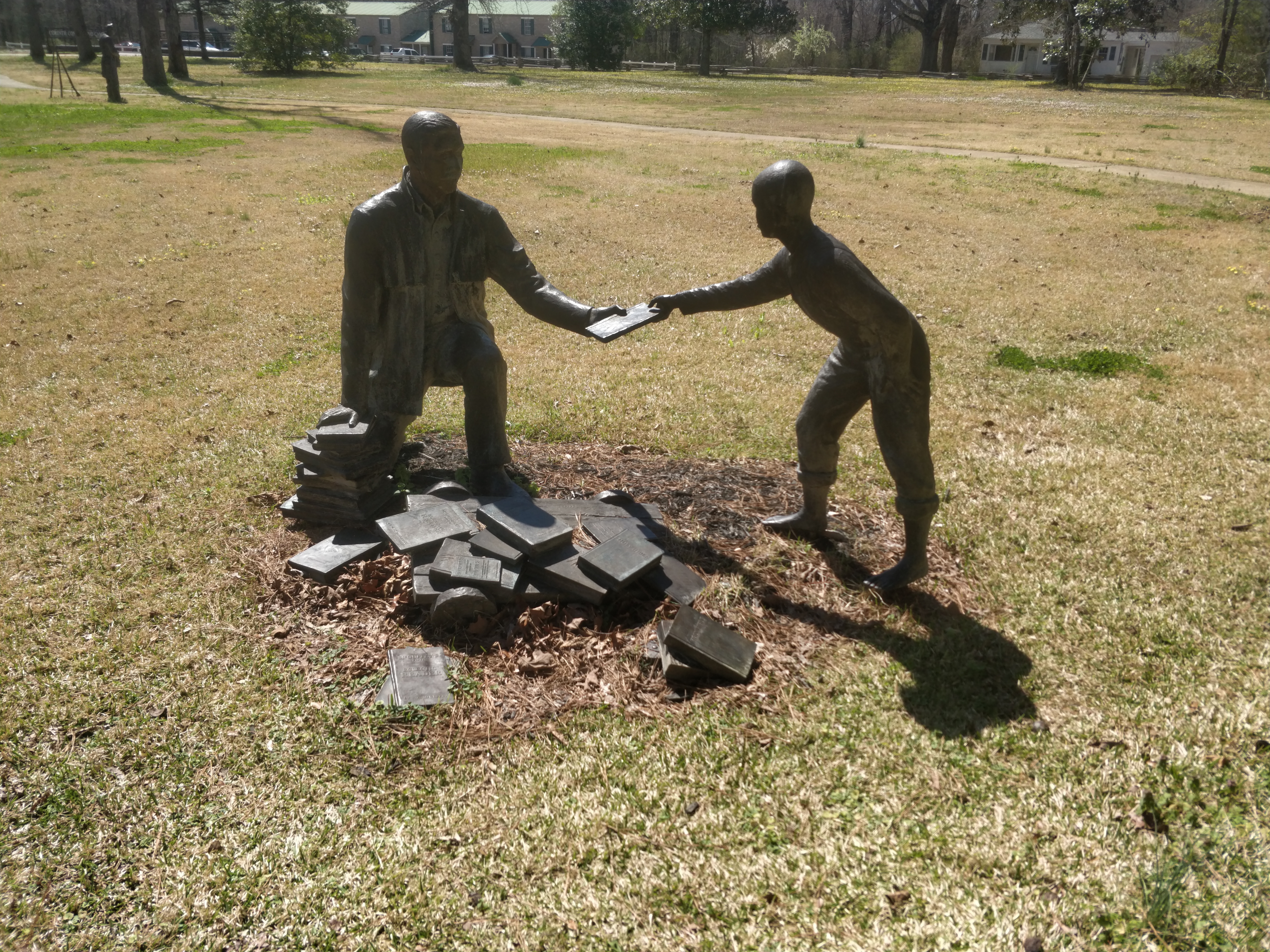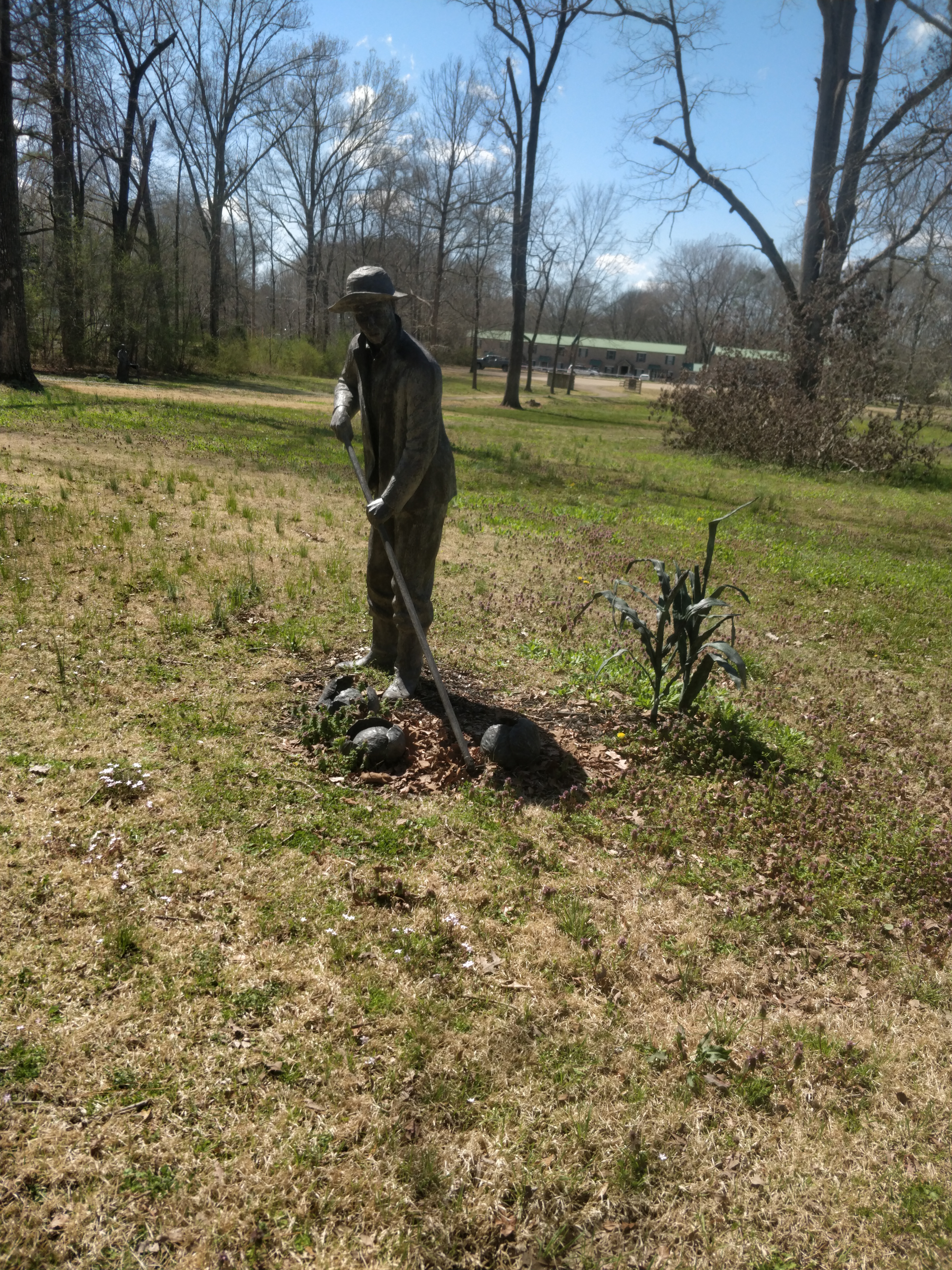 Along the driving tour, we visited another unique Civil War site – The Contraband Camp. When escaping slaves sought refuge with the Union troops sieging Corinth, they were given sanctuary. However, they were still considered “property” and so treated as war contraband. The newly free people were allowed to set up their own camp at the edge of town on a missionary’s farm. The preserved area has a walking trail with bronze statues depicting life in the camp. It was quite a moving and contemplative park.