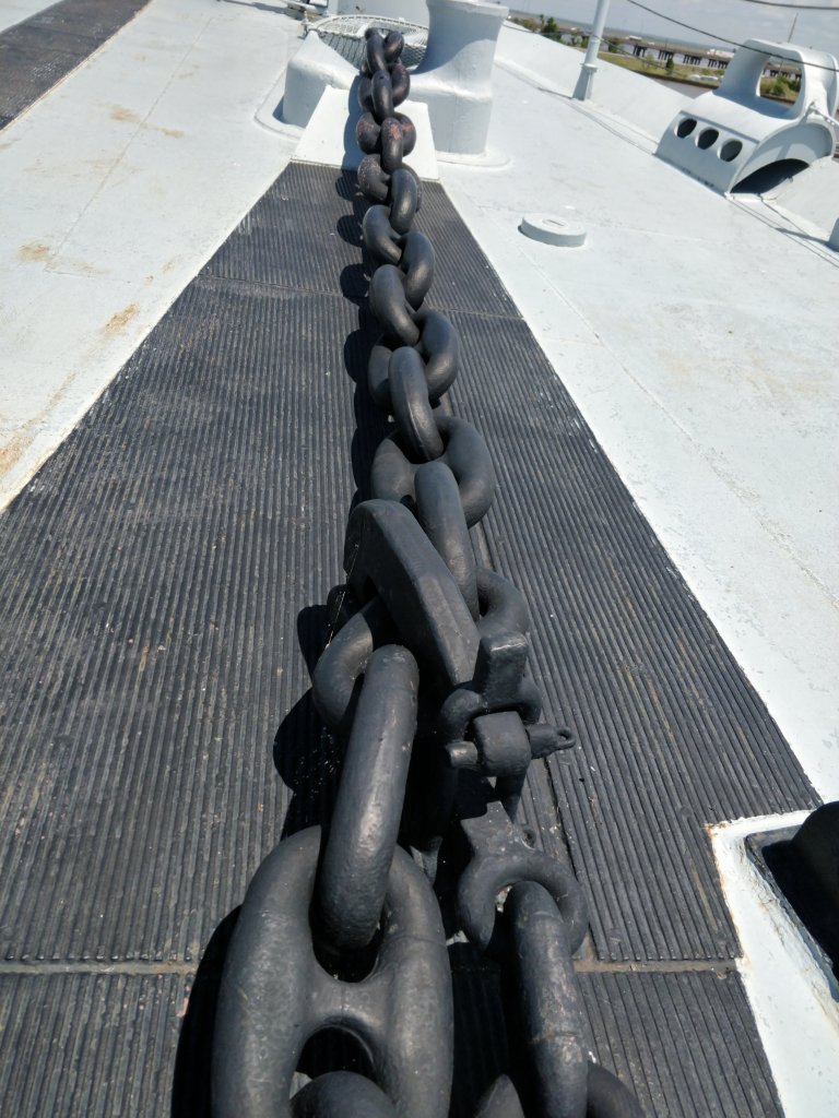 Climbing around the ship.