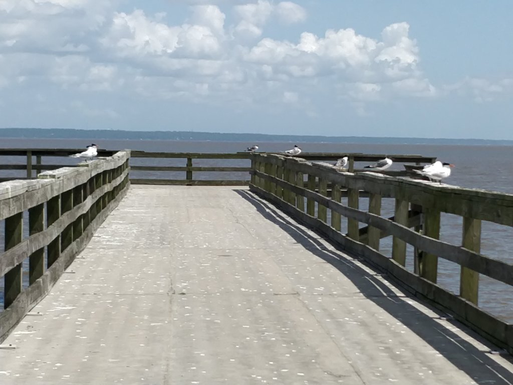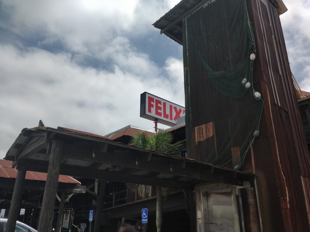 We stopped at a seafood restaurant that has been serving the Mobile Bay area for over fifty years. Felix’s Fish Camp was a labyrinth of entrance ways, dining rooms and alcoves. It was the perfect place to watch the pelicans outside playing in the protected marshland while sipping sweet iced teas. Our delicious meal included seafood gumbo and our first taste of fresh caught Redfish. We were hooked!