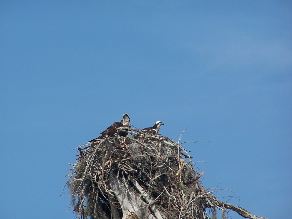 Osprey nesting tree; snowy egret.