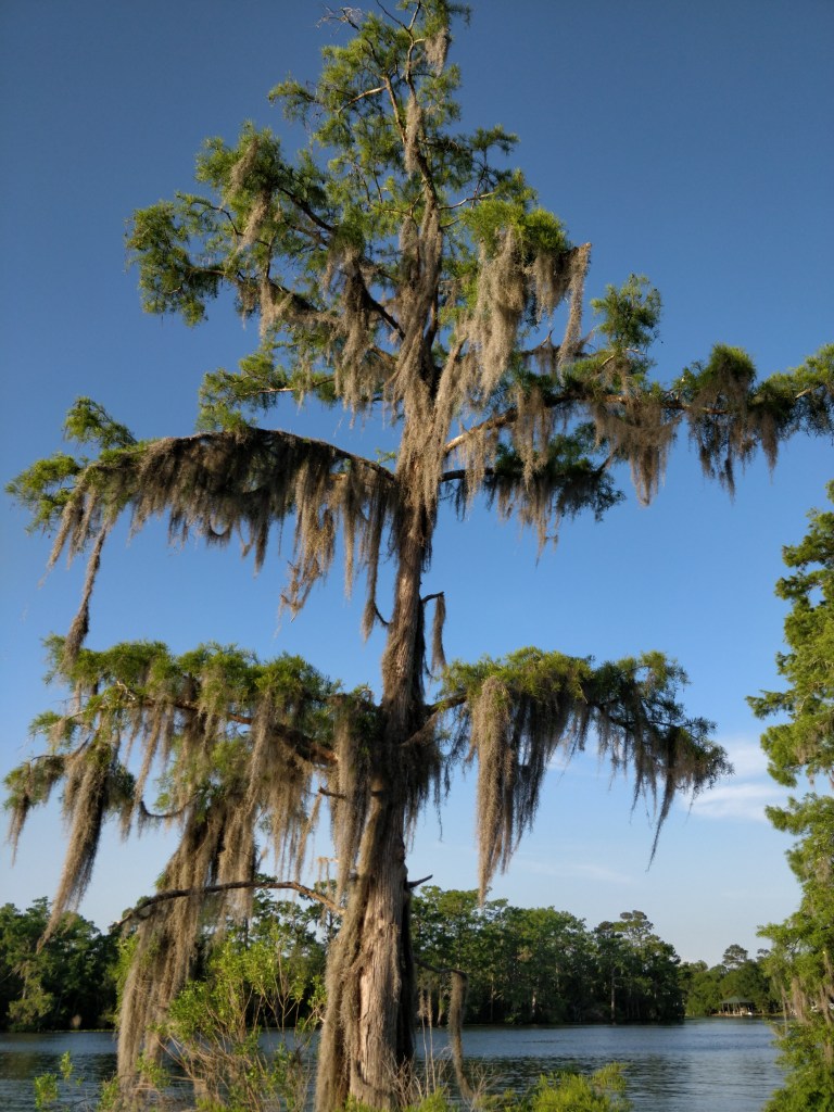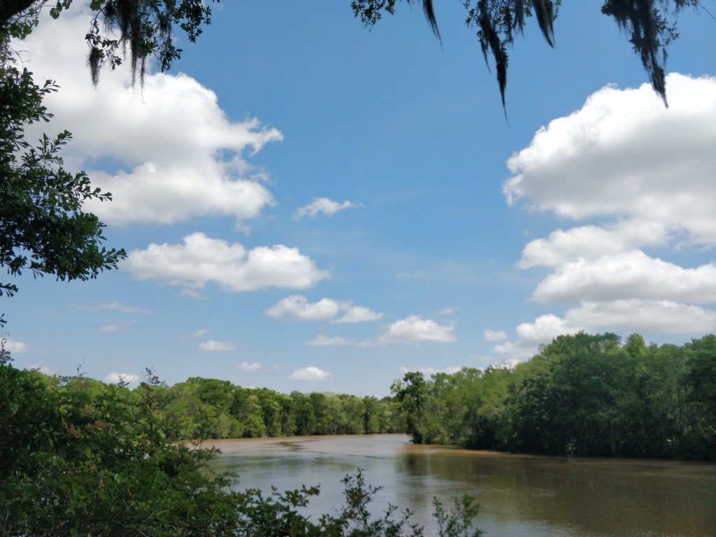 We left behind the Gulf Shores’ sandy beaches and breezes and headed into the swamps and bayous of the South. Our first stop was Gautier, MS located at the eastern edge of the largest remaining wet pine forest tract that extends from western Florida to eastern Texas. Swamps, marshlands, bayous and rivers are never far away from the highway exits. Bug spray and mosquito repellent proving grounds!