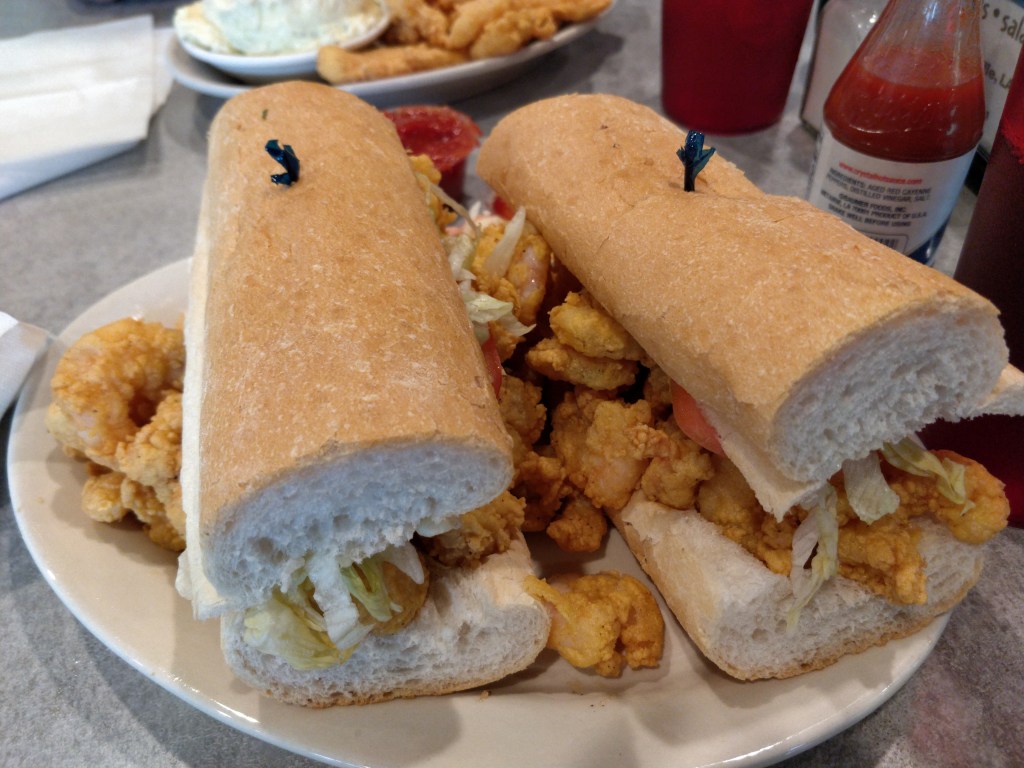 Since we were in the Cajun heartland, we tried several regional foods including alligator, brisket, catfish, and shrimp po’boys (sub sandwich), crawfish gumbo, red beans and rice, and boudin (sausages).