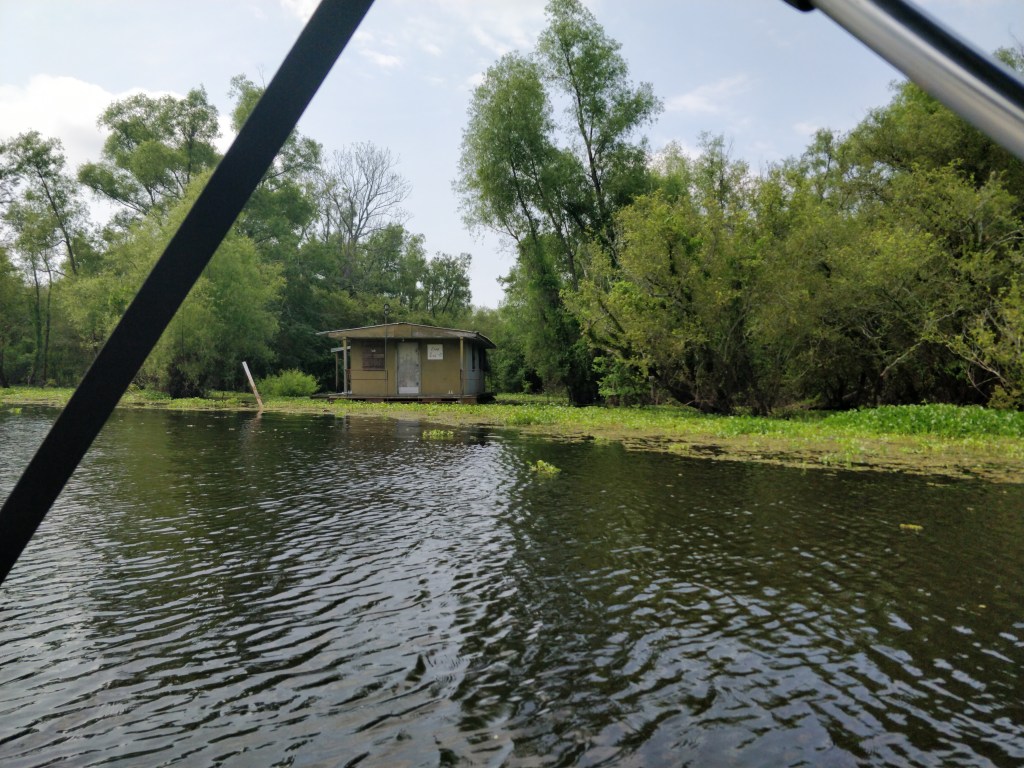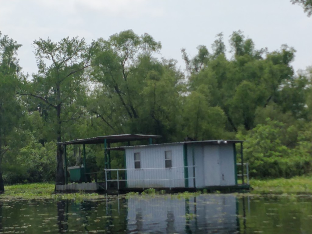 They would float their house from the northern portion of the swamp in the winter to the southern part in the summer and then return north again in the fall. This enabled them to continue fishing year round by avoiding becoming landlocked when the bayous started to dry out in the summer season. Our guide learned to navigate the labyrinth of bayous from them.