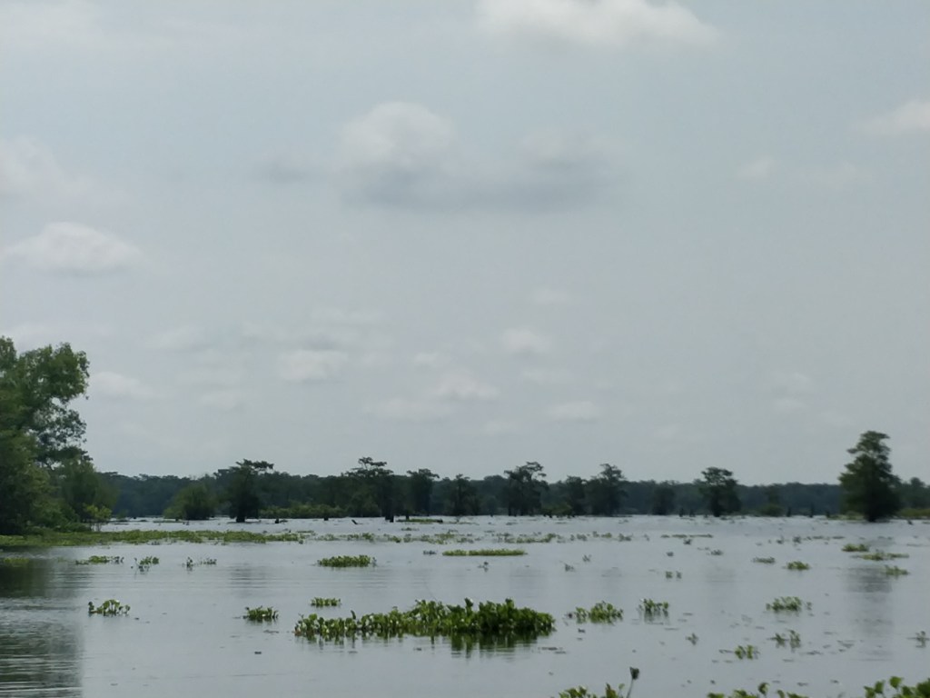 By the time we arrived at our next stop in Carencro, Louisiana, I finally understood why the Mississippi Delta ends near Vicksburg. Everything south is considered river-swamp and flows to form the magnificent Atchafalaya Swamp. After the 1927 historic flood of the Mississippi River which displaced millions of people, the Army Corps of Engineers built levees and river by-passes for flood control. Their work changed the course of the Mississippi River and the result greatly expanded the Atchafalaya Basin into a large portion of the southern part of Louisiana. (Atchafalaya rhymes with jambalaya.)