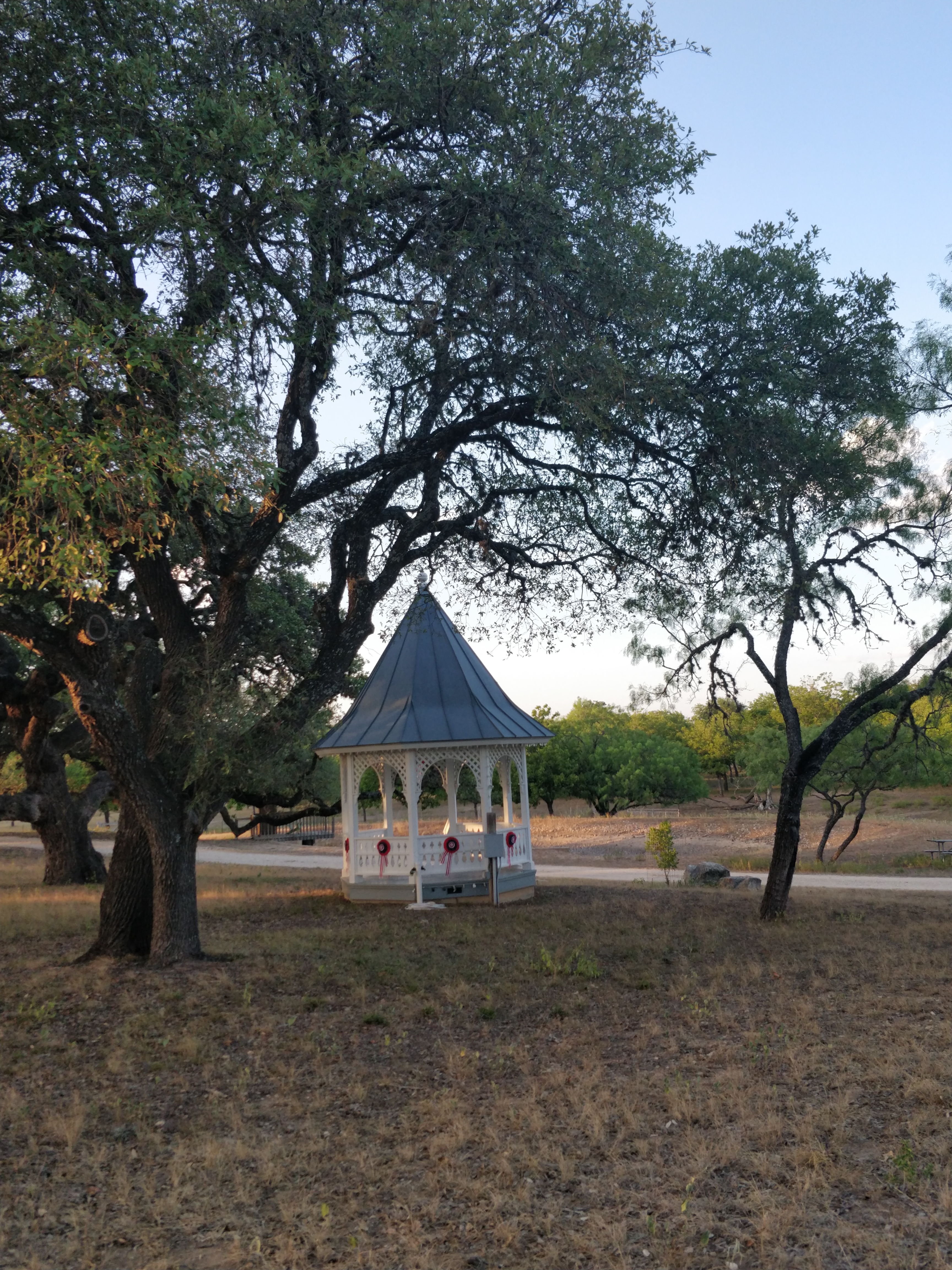 We stayed at Skyline Ranch RV Park for three days in a pull-thru, FHU site. Sites are gravel, level and separated with a tree and/or grassy strip. Each site has a picnic table and several picnic tables are scattered throughout the property. The common areas were beautifully landscaped and inviting. Trails and a gravel road lead to the picnic area at the Medina River about ¼ mile from the campground. On site are longhorn cattle, donkeys, horses, axis deer and other wildlife. The facilities were clean and convenient. Easy access from the Hwy 16 and a short drive to main street Bandera. The park was very quiet during our stay and the office staff was friendly and efficient during check-in. Free Wi-Fi worked for basic usage. This is a great location in the Hill Country.