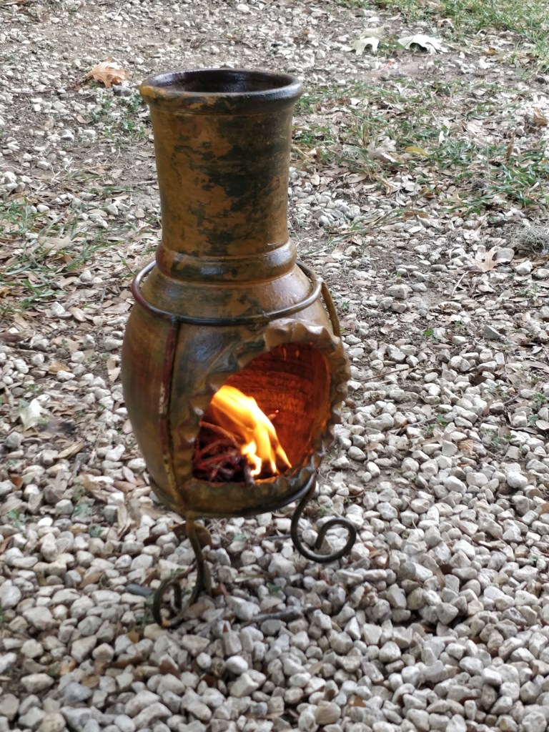 Due to the combination of drought and prolonged heatwave, burn bans have been in effect at every state park campground in Texas. Campfires and charcoal grills are strictly prohibited. The last time we were able to have a fire was in San Antonio when we tried out our little chiminea.