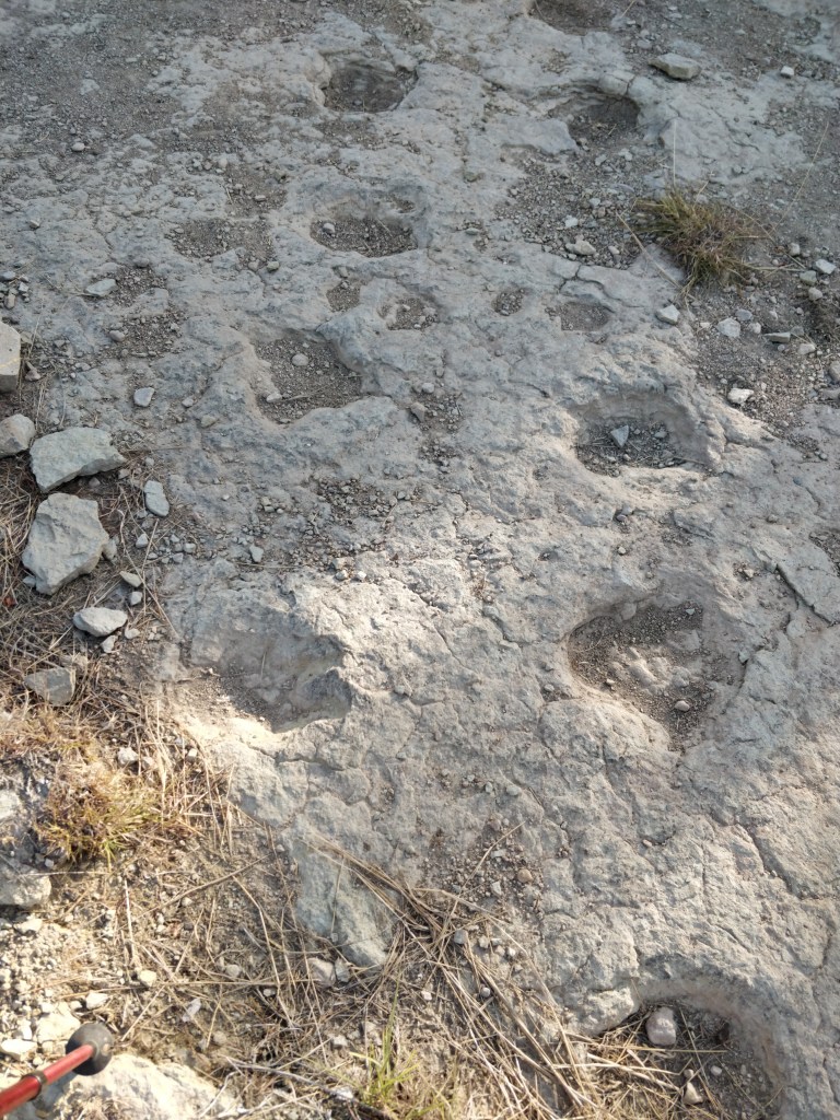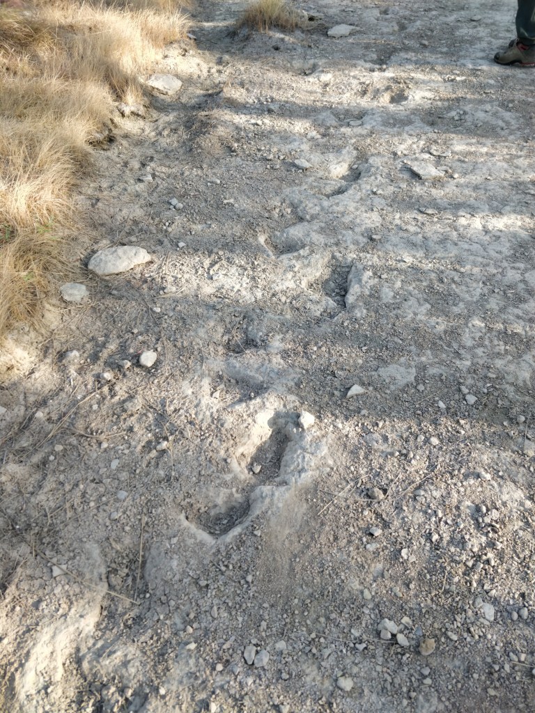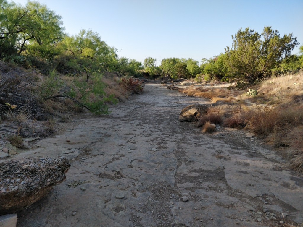 One of the highlights of the visit was the Prehistoric Tracks trail. Located in the northern part of the park, this beautiful hike along the mesquites, junipers, cactus, and sage led us to the ancient site. It was our first encounter with an edge of the Permian Basin fossil bed and a thrill to be able to clearly see so many tracks left by the Dimetrodons and other early prehistoric and pre-dinosaur creatures.