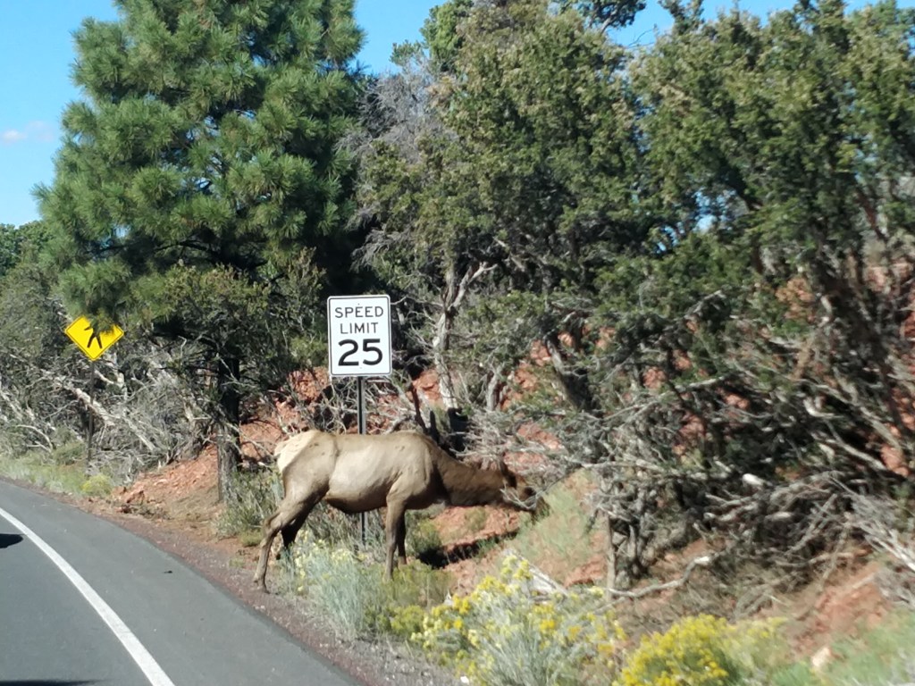 Quite simply, the immense size and complexity of the Grand Canyon is as spectacular as all the films, photos, stories and poetry portray. As we traveled along the rim, we would stop and sit at the edge of the canyon, mesmerized by the view. There is a feeling of depth and bigness that is not captured in photos. That was what was so amazing. The crowds increased as we traveled west and by the time we arrived at The Village, it was jammed with people and vehicles and even an elk! Planning well in advance is a must when visiting this area.