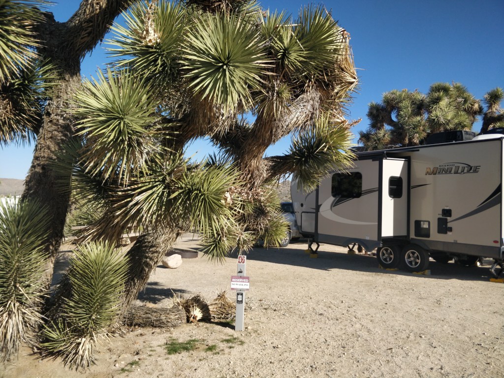 Dry camped at Joshua Tree National Park’s Black Rock Campground for three nights. Site #47 was large, pull-thru, and made of sand/gravel, but very uneven. We used blocks to level the trailer. Also included are picnic table and fire ring. Restrooms have flush toilets, running water and were clean. Campground had very low light for good stargazing and limited generator hours. Black Rock’s roads were in very poor condition and extreme caution was required when navigating through the campground. Several well maintained trails into the park are available from the campground which provided us with spectacular views of the Joshua Tree forest and overlooks. This campground had more availability and sites were more spacious than Jumbo Rocks and other RV camping options at the park, however it is separate from the main entrance which is about a fifteen minute drive away. We would recommend Black Rock Campground for the experience to be inside the less crowded part of Joshua Tree National Park and hiking trails.
