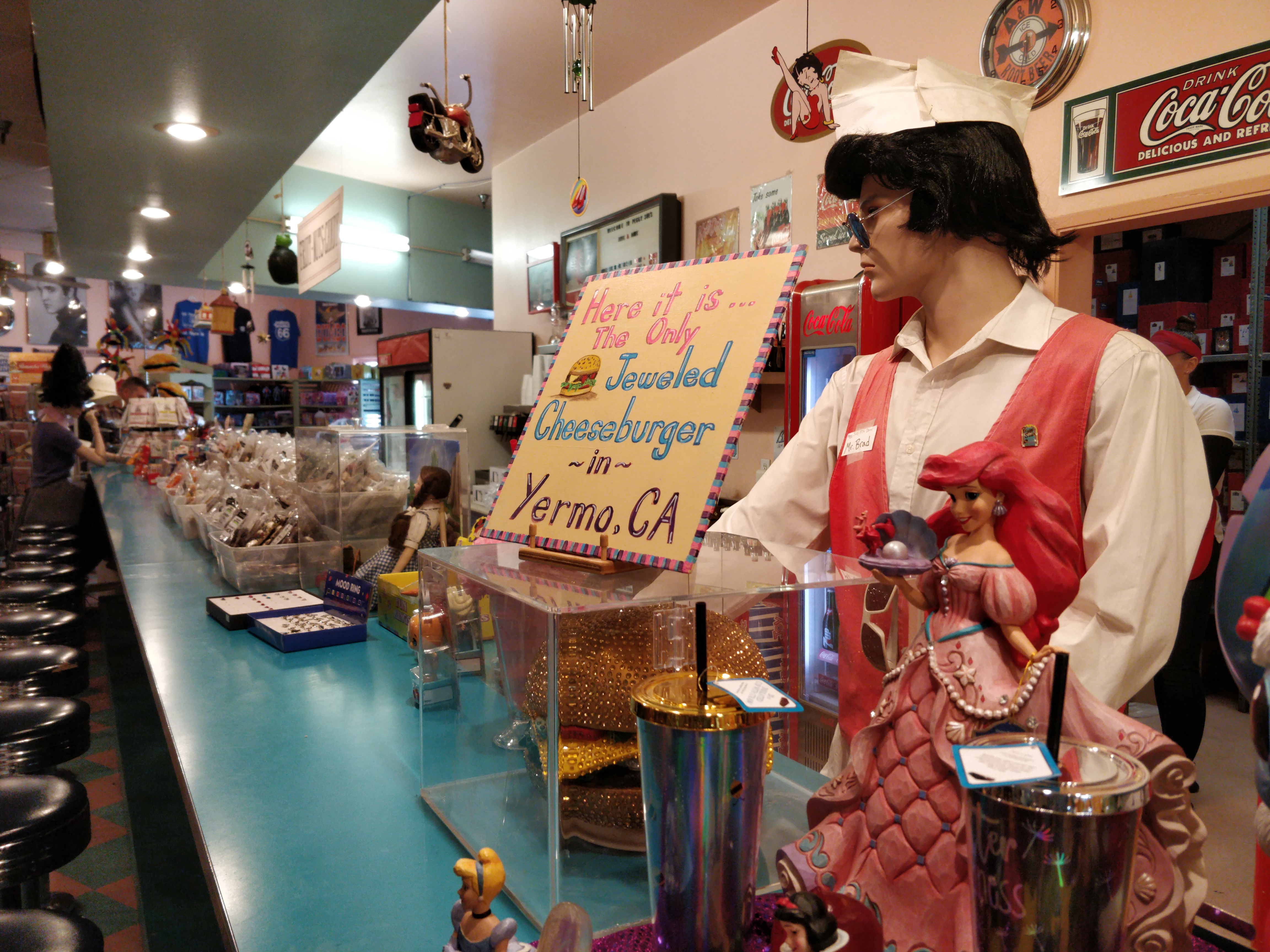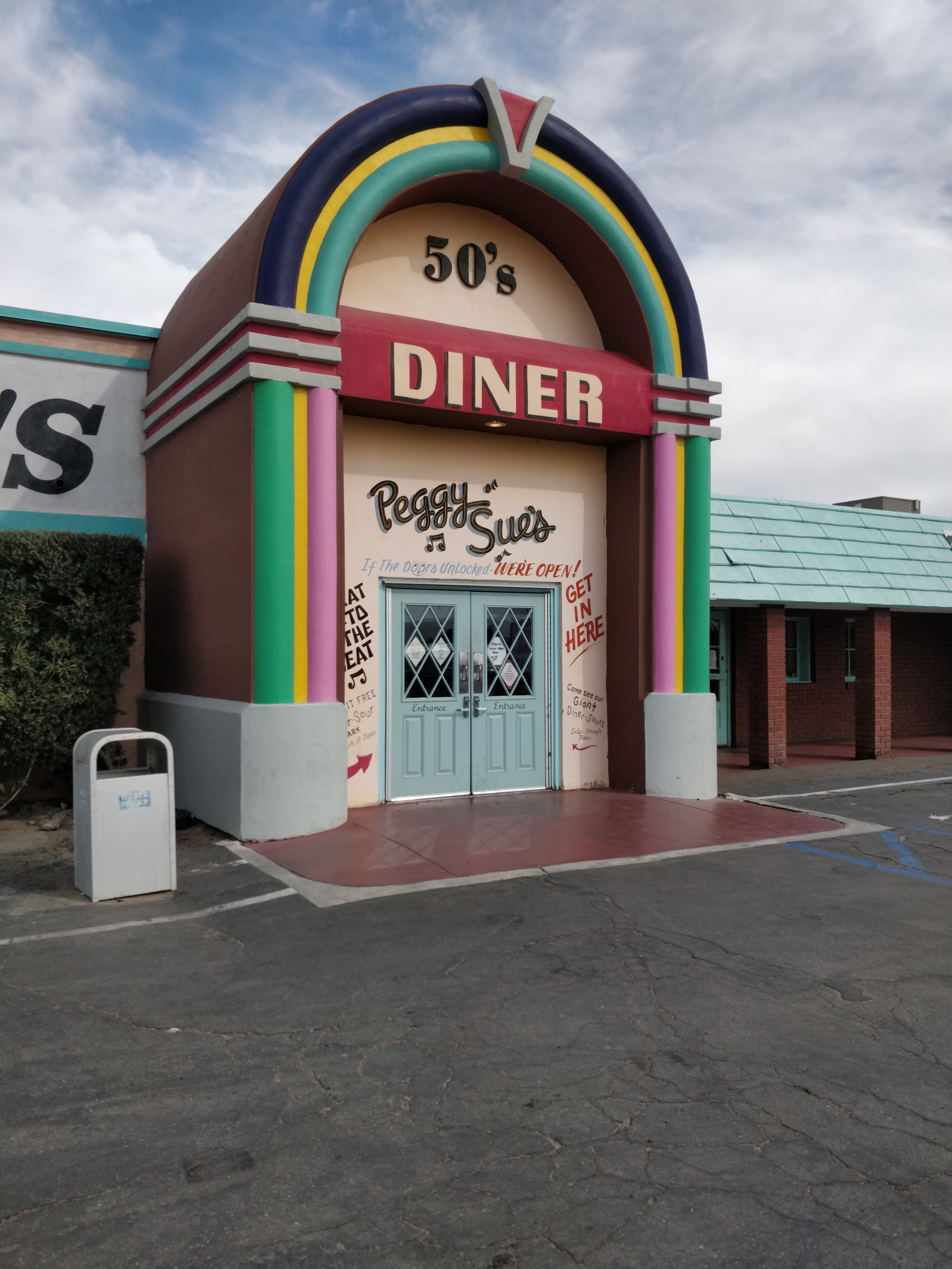 Near Barstow, CA, the 1950’s are alive and well and living at Peggy Sue’s Diner. The cruise-in added to the bobby socks and leather jacket vibes.