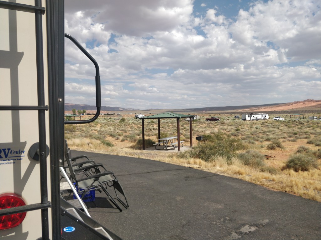 We stayed in the West Campground section for three nights. Our pull-in site with full hook ups included a picnic pavilion, fire pit, grill, and picnic table. We were a short walk to the west end of the Sand Hollow reservoir where the boat launch, beach and cliff diving were located. Sites were arranged in terraced loops, so each felt very spacious with nice views of the red cliffs and sand dunes. Site was level, access from the highway was easy. Showers and restrooms were cleaned every day. One of the newer state parks in Utah, numerous water sports are available with rentals onsite for ATVs, boats, jet skis, paddleboards, snorkel and diving equipment, disc golf, kayaks, and more. Understandably, the weekend was very crowded! Sites can be reserved online.