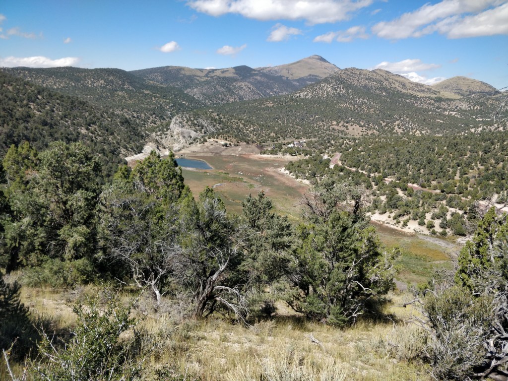 One of several hiking opportunities around Ely was the Overlook Trail at Cave Lake State Park. The park usually offers a 32,000 acre reservoir stocked with trout and a fishing pier, however, during our visit, construction work on the dam had necessitated the water to be drained. The resulting wide expanse of wetland reminded us of the Green River area of WY. The Overlook Trail is about a five mile loop that begins with a steep incline through a lush aspen forest and several different ecosystems . Winding among the rocky cliffs, views of Flat Top, a keyhole, and some beautiful blooming wildflowers kept the hike interesting and varied.
