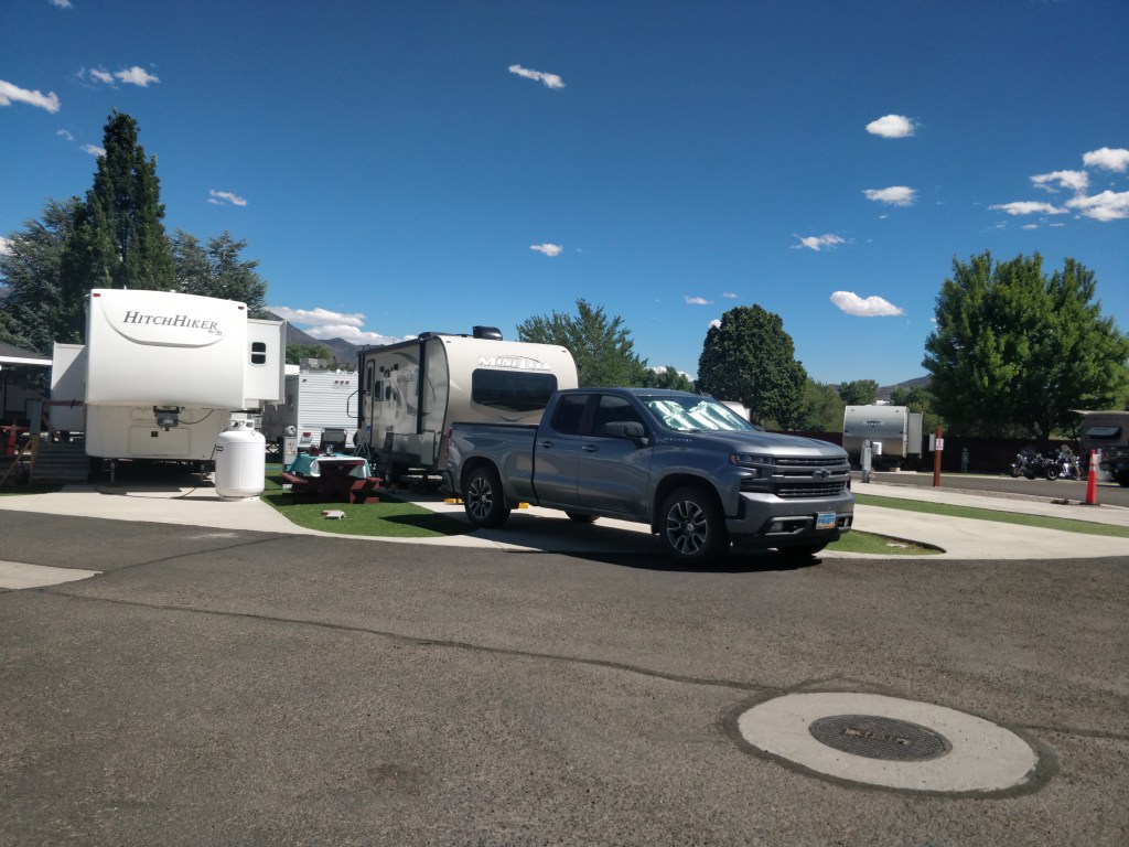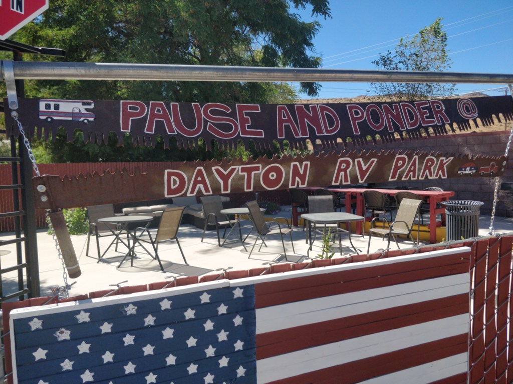Location, location, location! Dayton RV Park was a great base camp for exploring the wide variety of historic and recreational sites in this area. Located off Hwy 50, the park is next to Dayton State Park, a casino, and a short walk to the historic old town buildings, restaurants and museum. It is 20 miles to Lake Tahoe, Carson City and Virginia City. The park is clean with full hookup sites, artificial turf at each site and a picnic table. The two individual restroom/showers are huge and the laundry room was also clean. The hookups are located on the passenger side of the sites which required us to purchase an additional sewer hose extension and this unusual configuration required hoses and cords to run across the patio side of the site. The park is mostly seasonal guests and the sites are VERY close together. The park also has an inviting community BBQ area with several high end grills, tables, lounge seating, and beautiful landscaping. The WiFi was adequate for basic use and we had good T-Mobile service as well. There is so much to see and do in this area and we would stay at Dayton RV Park again.