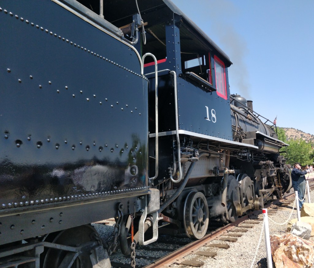 The V&T Railway also offers a longer route from Carson City to Virginia City on its restored steam locomotive and coaches. Traveling through the towns of Gold Hill and Silver City, we passed many abandoned mines along the canyon as we climbed up to Virginia City. The old television show, “Bonanza,” took place here. The conductor pointed out the locations where several of the scenes had been filmed. At present, this is the only train traveling the railway, but during the Comstock days, several trains a day would be running silver ore from mine to mill as fast as the tracks allowed.